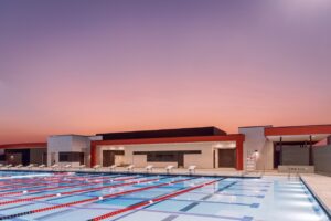 Originally built in 1993, the aquatic center underwent a complete transformation. The project included the construction of a 50-meter pool with covered concrete bleachers where athletes can participate in skill-building training and compete in high-level events. The new facility also includes a 6,500 square-foot building with brand-new locker rooms, a coach’s office, a pool mechanical room and a 1,000 square-foot building for restrooms and concessions.